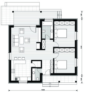 Galerie foto Despre proiect Casa cu un nivel cu un aspect modern si spatii generoase care poate fi folosita si drept casa de vacanta. Proiectul poate fi realizat pe o structura din panouri din lemn. Se pot efectua modificari asupra proiectului, redimensionarea constructiei, adaugarea unui garaj sau creerea unui subsol pe toata suprafata constructiei sau [...]